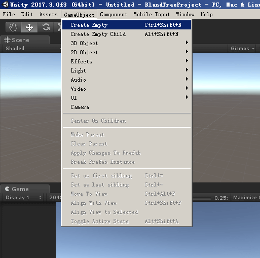 | Create Empty(创建空对象) | 创建一个空的游戏对象 | Ctrl + Shift + N |