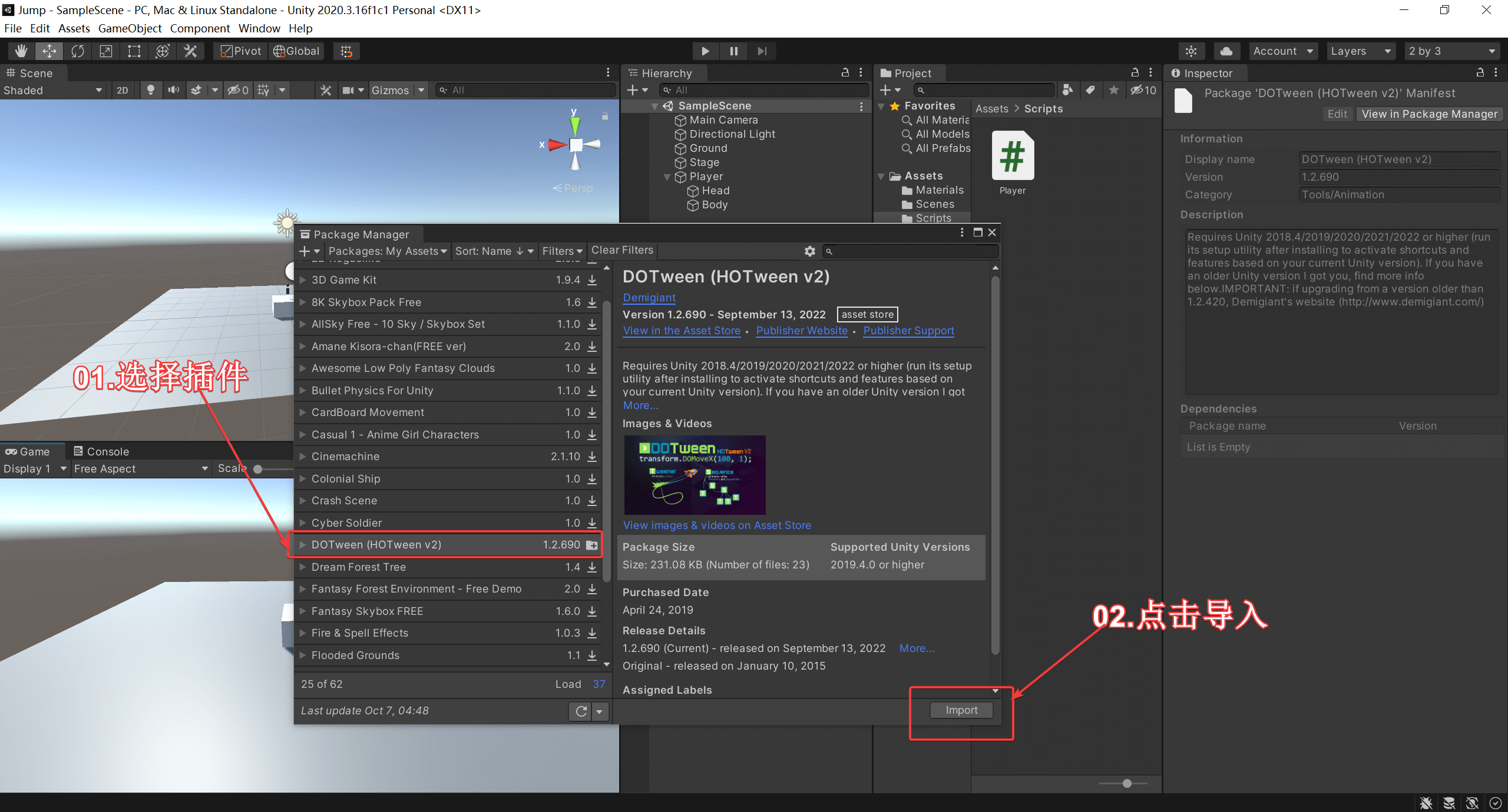 - 使用DG.Tweening插件(没有的话请去资源商店下载)(Window->Package Manager)